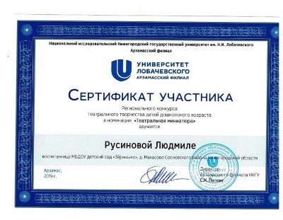 Благодарим за участие воспитанницу группы «Золотой ключик»