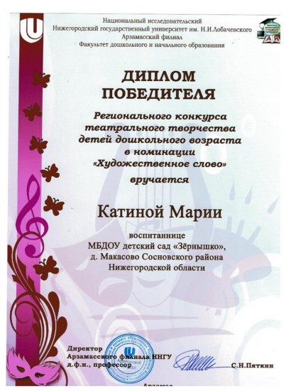 Катину Марию с победой в региональном конкурсе театрального творчества